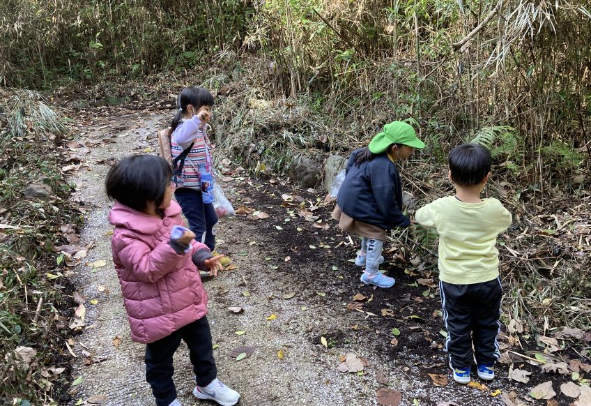 「自分で考えて遊びを見つけるのは、保育園では味わえない」 2021年12月19日のおさんぽ隊は、綾町の馬事公苑からイチイガシの巨樹を目指して歩き、野首遊歩道を散策して馬事公苑へ戻るという、計算では約3キロメートルのコー...